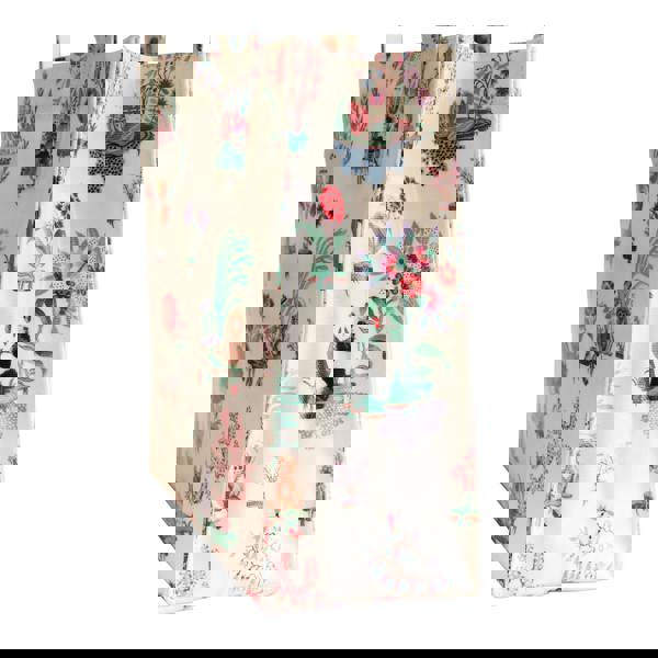 Set against an ecru base, the printed design brings together flowers, a tropical island scene, and playful monkey and panda motifs, alongside logo detailing. It’s a practical choice when you want a lightweight bag with a distinctive look that stands out in your daily rotation.