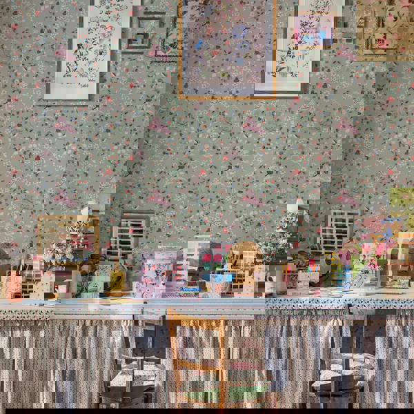 Puppy Dream Floral Sage wallpaper is a joyful celebration of nature and nostalgia - playful pups run through meadows of ditsy flowers, creating a scene that's both sweet and serene. The sage green base adds a soft, natural calm that balances the charm with a gentle, timeless feel. Perfect for children's rooms, nurseries or any space that welcomes a little whimsy. The delicate repeat creates visual interest without overwhelming - just the right mix of character and calm. Printed on quality non-woven paper for easy application and a beautifully smooth finish.