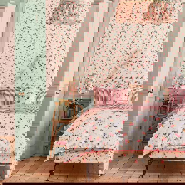 Add the finishing touches to your home by putting a bow on your walls with Rose & Bows Cream. This adorable matt finish wallpaper presents dainty pastel yellow, coral pink and cranberry red roses in mini bouquets, finely branched together and beautifully complimented by a blue ribbon bow, for a pop of colour, all perfectly complimented by a classic Cath Kidston cream background to create a light and airy feel within any space.