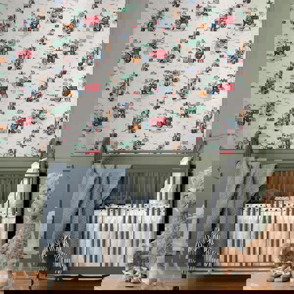 Tractor Multi is a fun and playful nod to the stunning rural countryside of Great Britain. Featuring some furry friends hard at work, operating a variety blue, red and green tractors. All laid upon a classic Cath Kidston cream background for a light and inviting look. This wallpaper is perfect for those who appreciate the beauty of agriculture, adding a touch of rustic charm to any space.