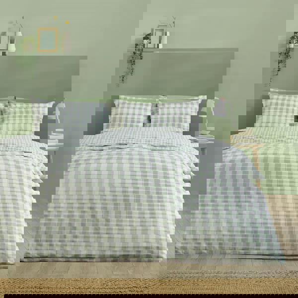 A timeless design perfect for any season, this classic gingham check pattern brings a welcoming, homey feel to any bedroom. Fully reversible, featuring a coordinating design for two fresh looks in one. Created from easy-care recycled polyester and soft cotton, blended for everyday use.
