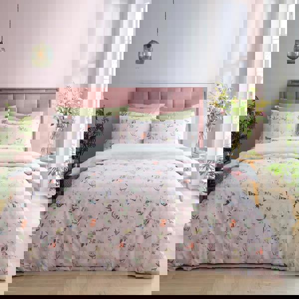 Step into a flourishing garden sanctuary with this exquisitely detailed floral bedding set. Set against a soft blush ombré backdrop, the design captures the elegance of a traditional English garden in full bloom. An abundance of carefully illustrated flower are gracefully layered with lush foliage, fluttering butterflies, and delicate blooms in varied stages of life. Digitally printed on luxuriously soft brushed microfibre, this design captures every detail with striking clarity, offering both comfort and sophistication.