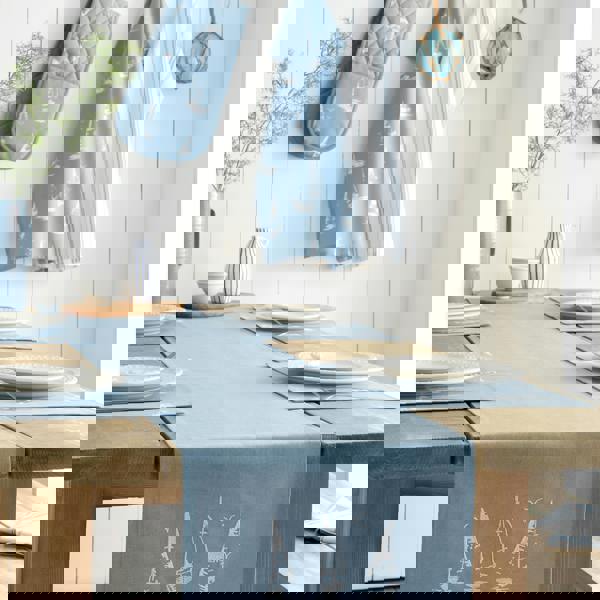 Bring the spirit of the sea into your dining space with this charming sailing boat design. Inspired by tranquil harbours and ocean breezes. This placemats captures a relaxed coastal retreat, where calming white sketches of sailboats glide across a soft blue base. Crafted from easy care, durable 100% cotton fabric, these placemats are designed for everyday use while maintaining their timeless appeal. Perfect for both casual meals and special gatherings, they bring warmth and style to any occasion.