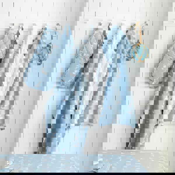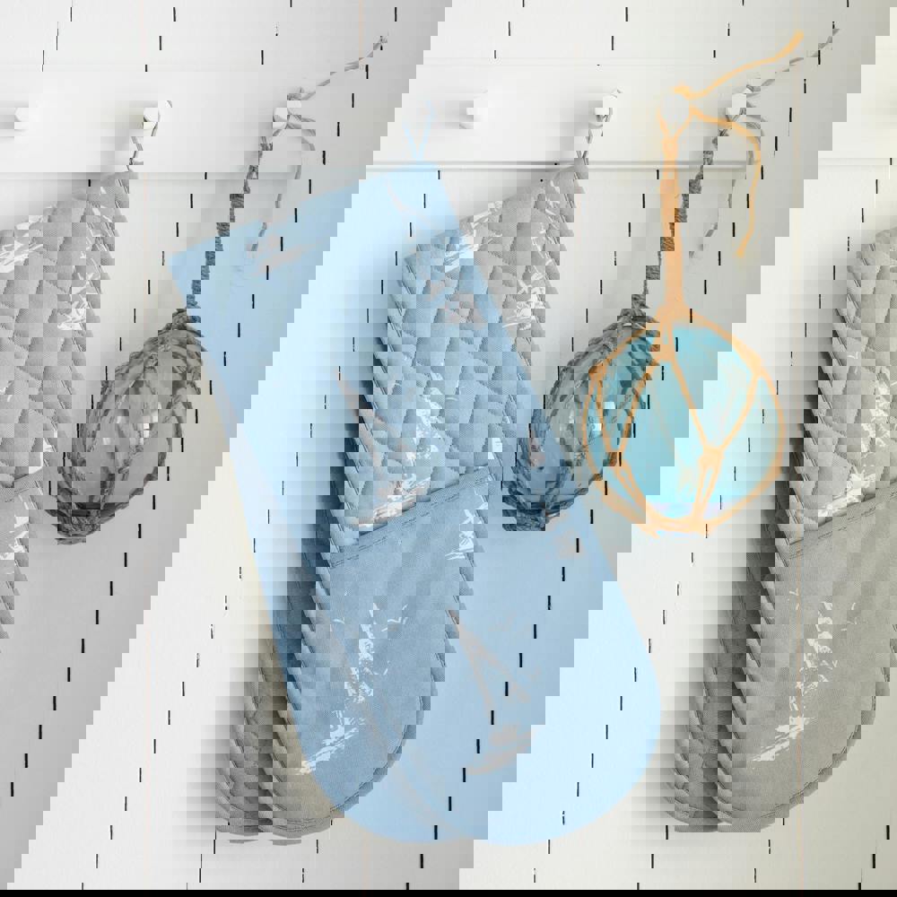Bring the spirit of the sea into your kitchen with this charming sailing boat design. Inspired by tranquil harbours and ocean breezes. This apron captures a relaxed coastal retreat, where calming white sketches of sailboats glide across a soft blue base. Crafted from easy care, durable 100% cotton fabric, this oven glove provides comfort and protection while handling hot dishes. Perfect for everyday use, it combines practicality with rustic elegance.