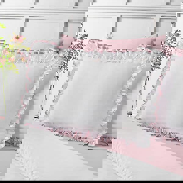 Catherine Lansfield So Soft Mono Frill Duvet Cover Set White / Pink