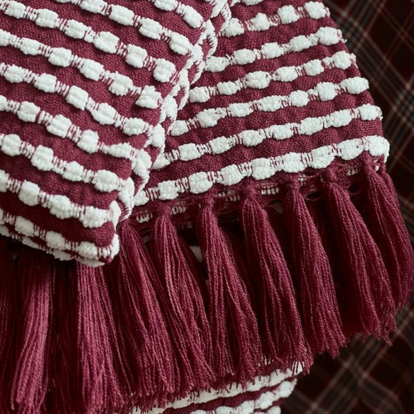 Update your home styling with this cosy stab stitch blanket in dark tones, finished with a tasselled edging for an additional detailing .