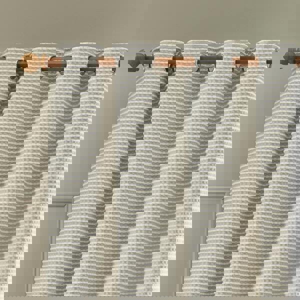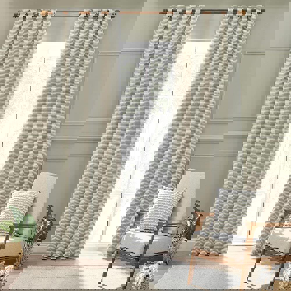 Make a statement with these eye-catching curtains, featuring a tactile tufted stab stitch texture that brings depth and dimension to your space. Striking the perfect balance between modern sophistication and everyday comfort. The bold stripe effect adds a dramatic styling, making them a focal point in any room. Finished with an eyelet header for easy installation.