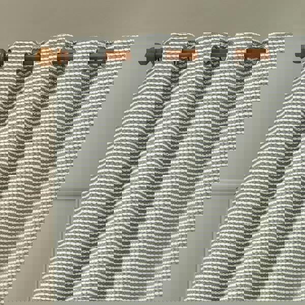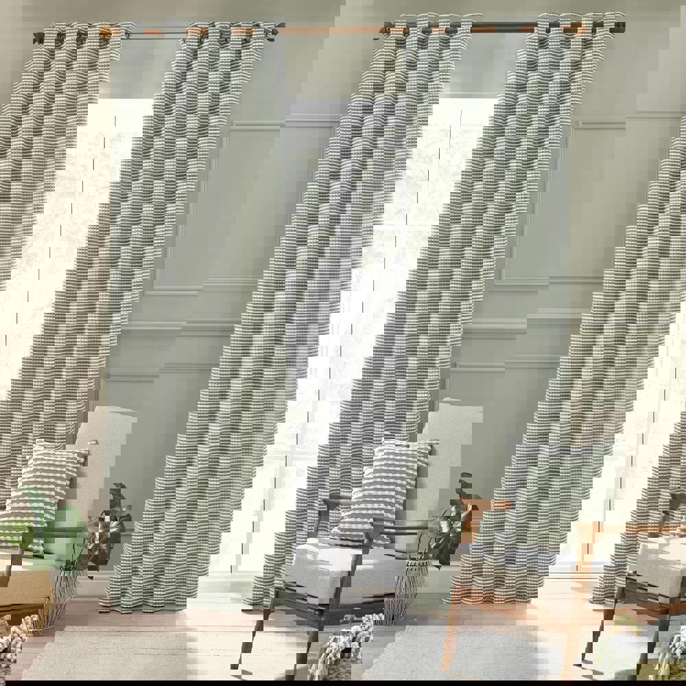 Make a statement with these eye-catching curtains, featuring a tactile tufted stab stitch texture that brings depth and dimension to your space. Striking the perfect balance between modern sophistication and everyday comfort. The bold stripe effect adds a dramatic styling, making them a focal point in any room. Finished with an eyelet header for easy installation.