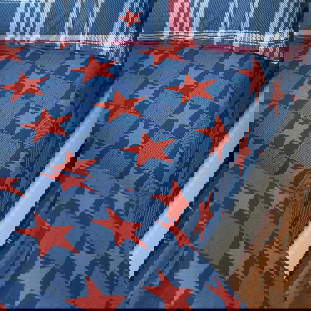 Add a bold base to your bed with this fun fitted sheet, featuring a striking all-over star print in deep navy and brick red. Created from easy-care recycled polyester and soft cotton, blended for everyday use.