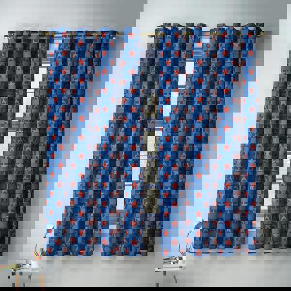 Bring a bold, adventurous run to any room with this striking pair of fun fully reversible curtains. One side features a classic check design in deep navy, brick red, and white tones, scattered with playful stars, while the reverse showcases a contrasting all-over star print on a rich navy base. Created from recycled polyester and soft cotton, blended for everyday use. Finished with an eyelet header for easy installation.