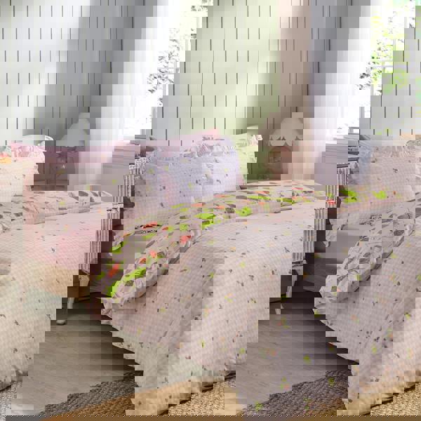 Fresh, playful, and full of countryside charm, this design showcases a delightful pattern of tasty strawberries for a sweet seasonal update. Fully reversible, with a coordinating gingham check with a scattering of strawberries, it offers two equally lovely looks in one. Finished with a delicate frilled edge on the pillowcases, creating comfort with a touch of whimsy, perfect for brightening up any bedroom. Created from easy-care recycled polyester and soft cotton, blended for everyday use.