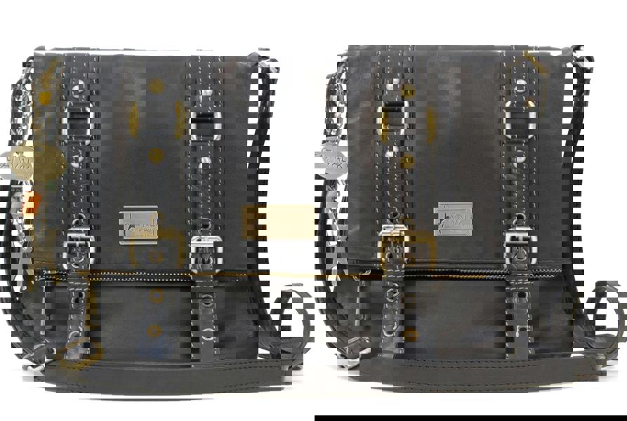Gorgeously dark and sultry cross-body bag made from designer antique leather