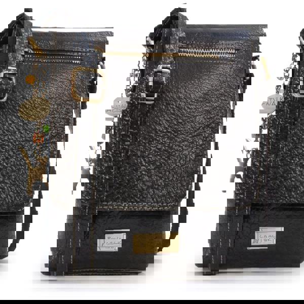 An adjustable, hardwearing leather-topped polyester strap enables the bag to be worn: