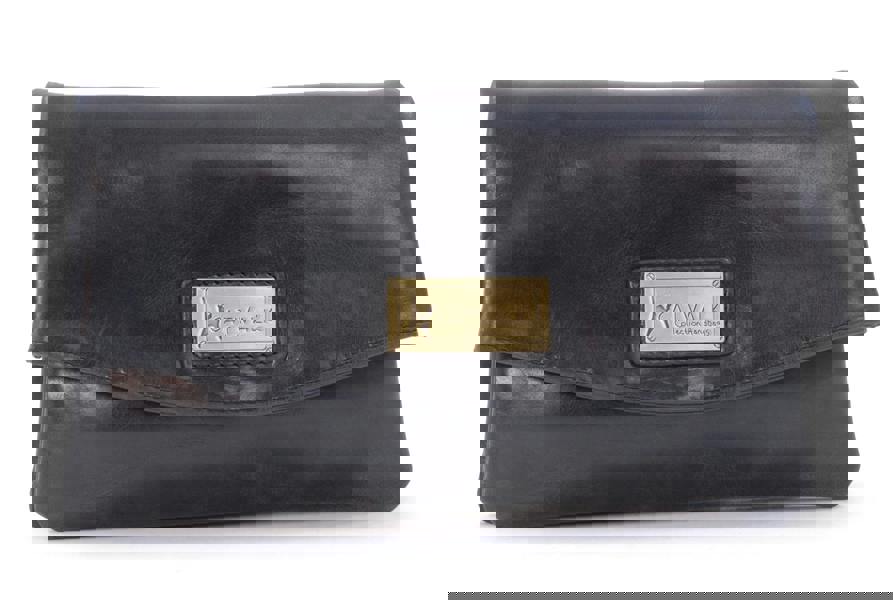 This flap-over cross-body bag is crafted from beautiful leather, a sheer pleasure to own. The Catwalk Collection Cat Logo is stylishly imprinted into a brass plate attached to the front panel.