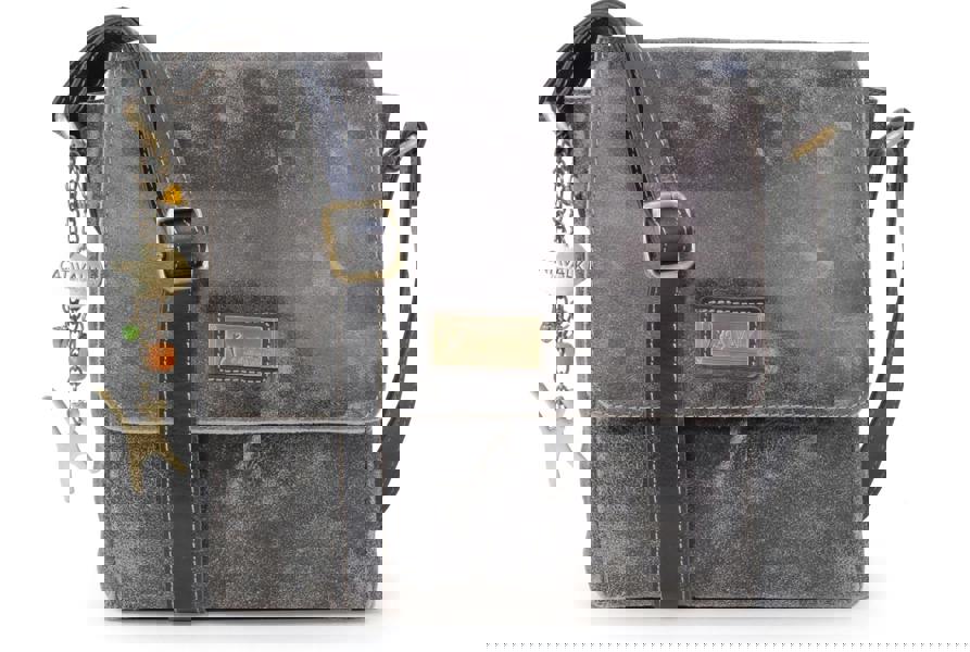 The pattern has a broken appearance, ideal for those seeking a vintage or rustic aesthetic. The leather has been split, making it lighter in weight than the average leather bag.