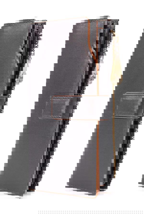 This large leather purse offers practical organisation for everyday use, with dedicated sections for cards, coins, notes, and even a smartphone.
