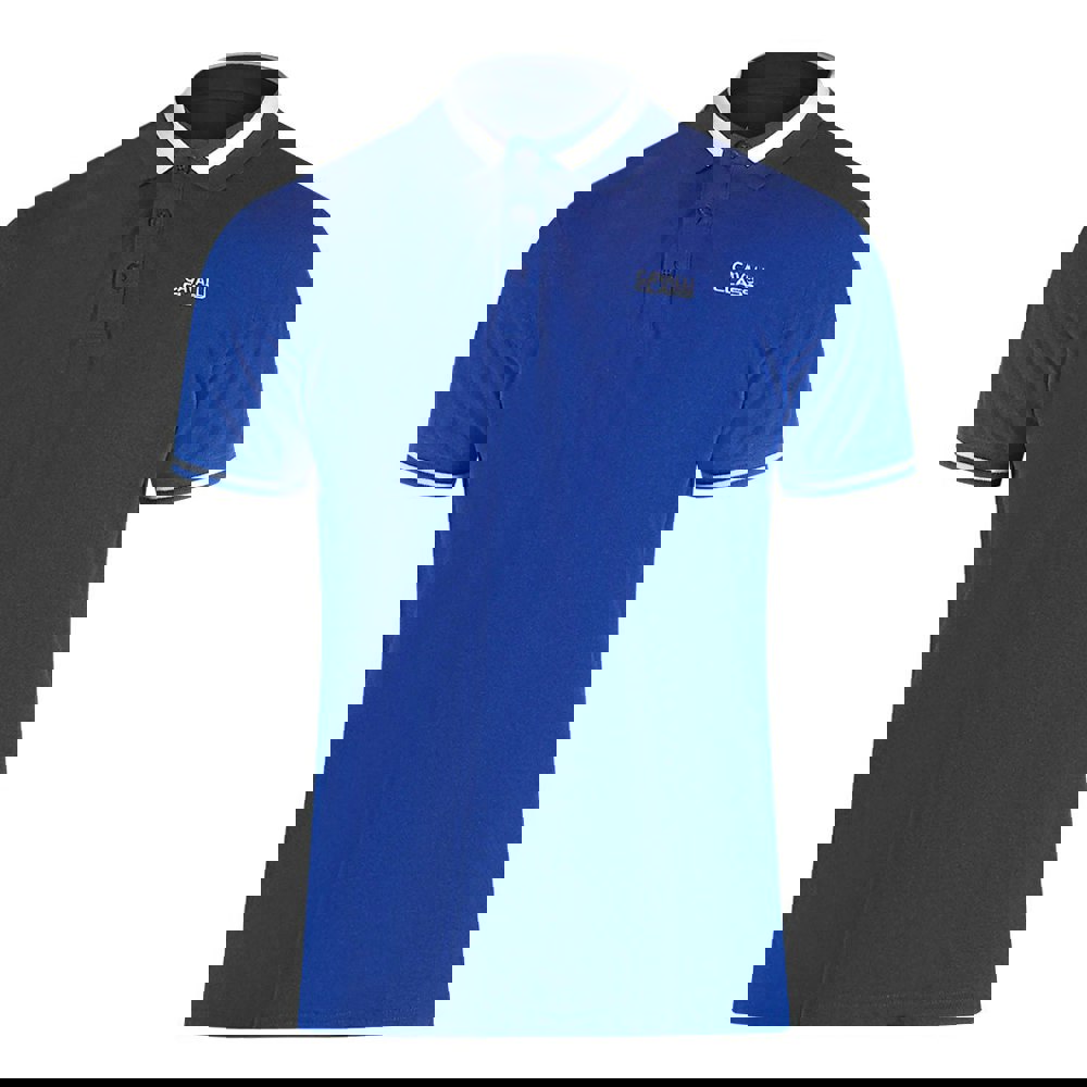 Experience timeless style with the Cavalli Class Bold Stripe Collar Iris Blue Polo Shirt.