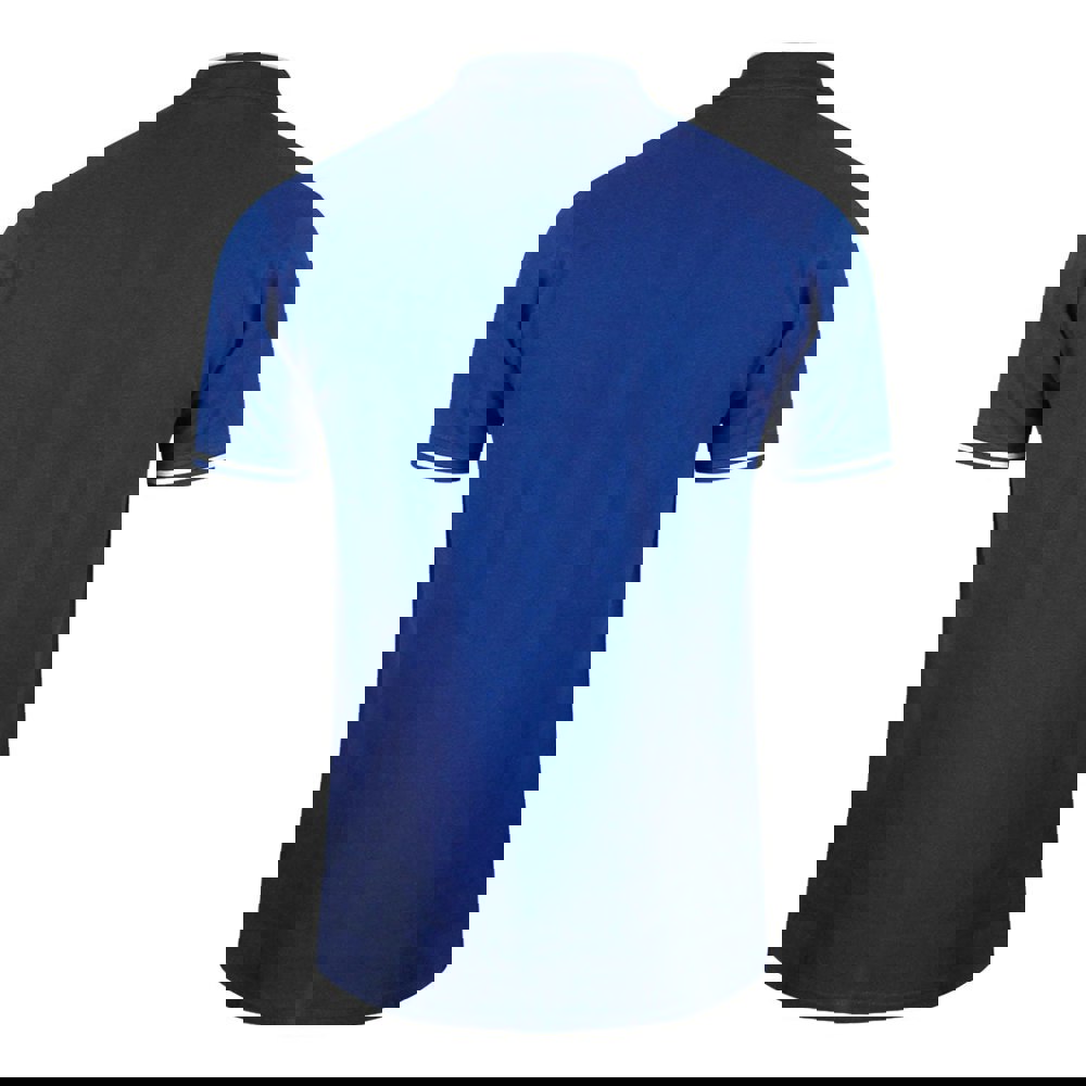 Its striking iris blue color is complemented by a bold striped collar, adding a distinctive touch to your casual wardrobe.