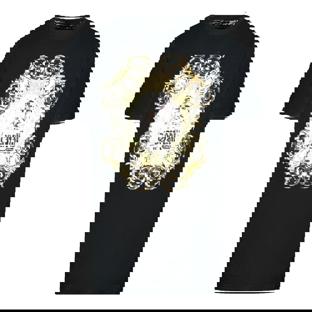 Elevate your wardrobe with the Cavalli Class Bold Tiger Emblem Design Black T-Shirt, crafted from 100% premium cotton for unbeatable comfort and durability.