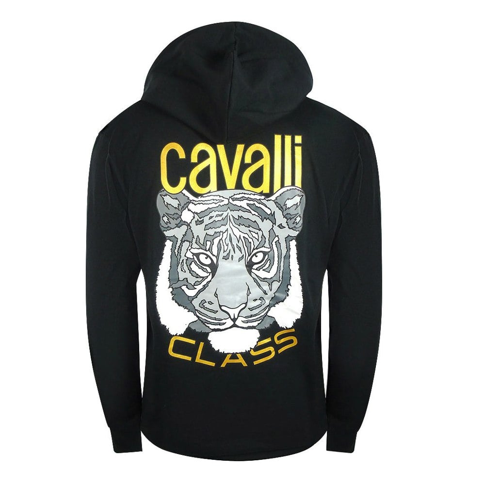 Elevate your casual wardrobe with the Cavalli Class Bold Tiger Graphic Black Hoodie.