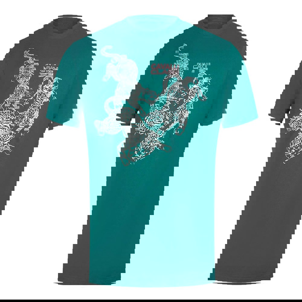 Elevate your casual wardrobe with the Cavalli Class Paisley Leopards Logo Green T-Shirt for men.