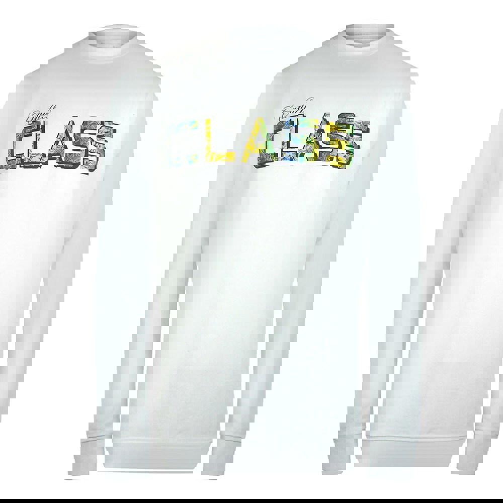 Elevate your casual wardrobe with the Cavalli Class Vibrant Floral Logo Off White Sweatshirt.