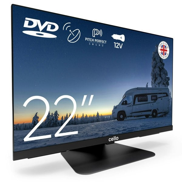Cello C2224F 12volt and Mains 22W Traveller Caravan Frameless Television with built in Freeview HD, Satellite and built in DVD Player . Made in the UK