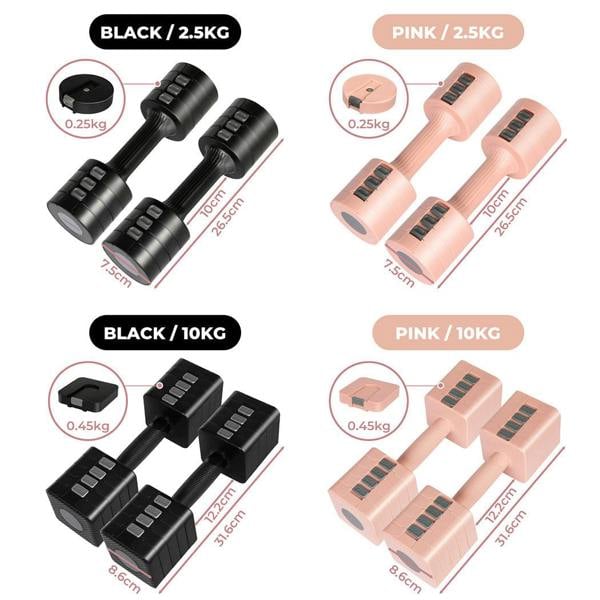 This exercise dumbbells offers 4 / 5 different weight settings. Featuring vibration-resistant SecureLock buttons with an automatic locking function and a handle designed with ABS anti-slip material ensuring safe use without any worries. Additionally it is equipped with built-in stainless steel blocks to prevent rust.
