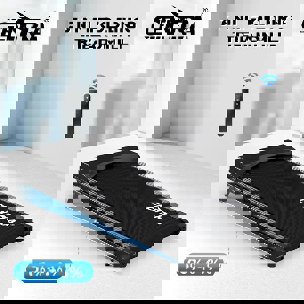 The treadmill features manual incline adjustment up to 4° and a 5-layer shock-absorbing running belt to protect your joints. Control your pace via LED display remote control or your smartphone.