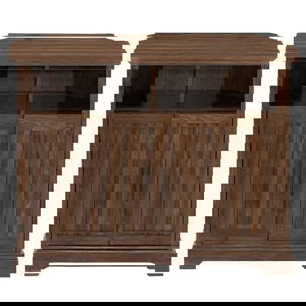 The angled sides allow for the perfect corner fit allowing you to maximise your space while the grooved detailed door infuse a rustic style into your living space.