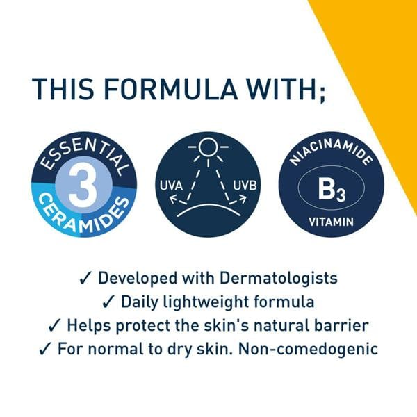 Developed with dermatologists, this lightweight gentle moisturiser with SPF50+ defends the skin against UV damage. Enriched with three essential ceramides that help to protect the skin's natural barrier and ensures the skin is calmed and hydrated all day long.