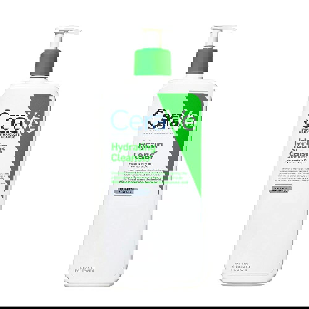 Massage CeraVe Hydrating Cleanser into wet skin. Rinse