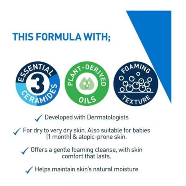 Formulated with Triglyceride, Squalane, 3 Essential Ceramides, Glycerin & Hyaluronic Acid, CeraVe Hydrating Foaming Oil Cleanser helps maintain the skin barrier and comforts the skin. Suitable for normal to very dry skin. Also suitable for sensitive and atopic-prone skin.