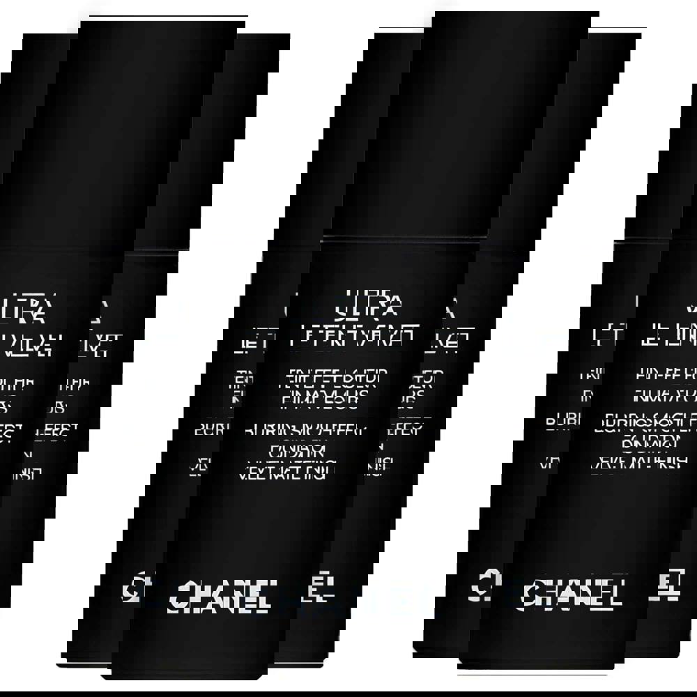 Chanel Ultra Le Teint Velvet foundation delivers sheer-to-medium coverage to refine the look of the complexion. The formula helps blur the appearance of pores and visible imperfections, leaving skin looking smoother and more even with a soft-focus effect.
