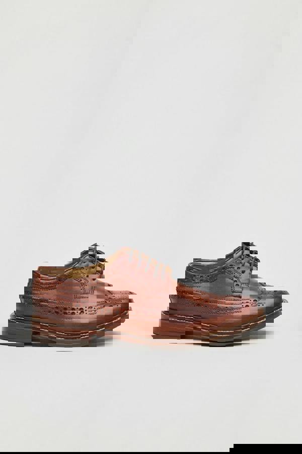 Timeless Long Wing Tip Brogue in rich Woodberry leather. The Long wing pattern is a classic line on men's brogues, and makes the shoe versatile and easy to wear. Burnished leather upper, leather linings and sole, finished with a waxed cotton lace.
