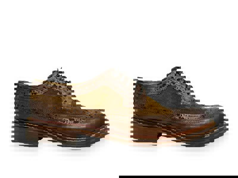 The Chapman & Moore two tone oxford longwing brogue is crafted from rich mahogany hand finished leather and tobacco suede. Breathable leather linings and rubber sole for maximum comfort.