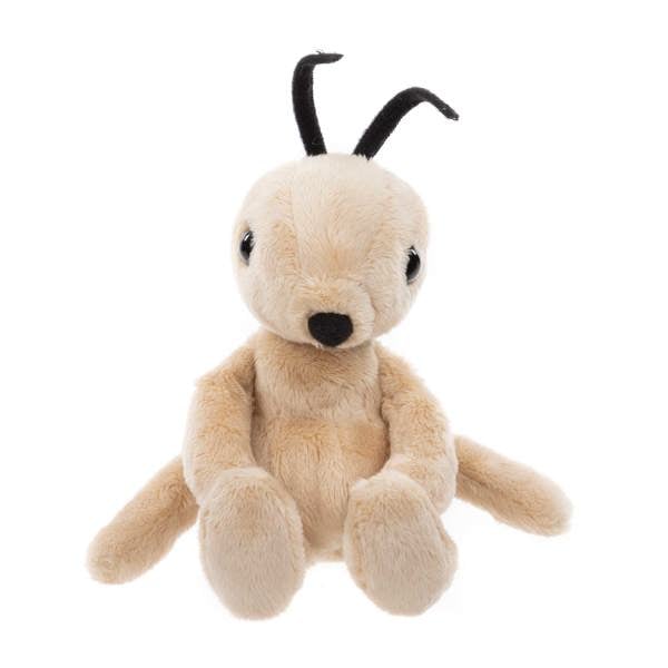 DESIGN - Tony Ant has been designed with every little detail in mind. Just like a real ant it has two black antennae, black eyes, and a long body made from super soft light brown plush. This character is ready to burrow into their new home and enjoy cuddles all day long.