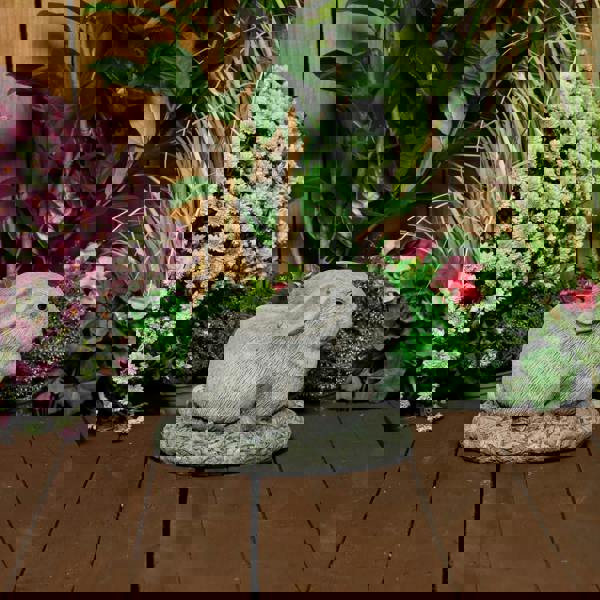 Add a touch of woodland charm to your outdoor space with this sweet and serene Rabbit Garden Pot. Expertly crafted from stone cast for durability, this planter features a lifelike bunny sitting peacefully on a textured base of leaves. With a planting cavity nestled in its back, it's ideal for showcasing petite blooms, herbs, or succulents, bringing gentle character to any garden, windowsill, or patio.