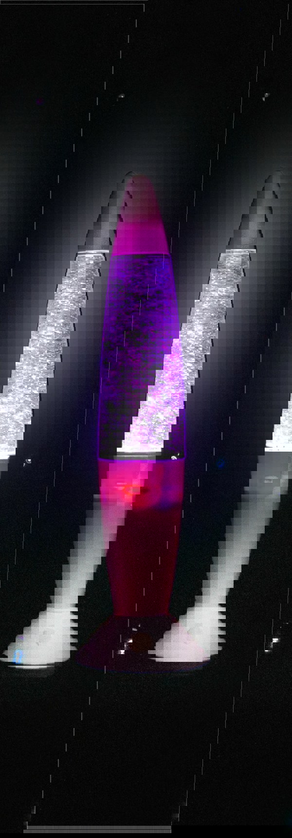 The colour changing glitter lamp will delight young and old alike with its colourful swirling effect. The glitter lamp is a twist on the classic lava lamp, it is filled with glitter and when the lamp is turned on it continually swirls inside the lamp, lights at the bottom of the lamp make the liquid and glitter appear to change colour through the colours of the rainbow - green, red, pink, purple and blue. The lamp has an on/off switch and is powered by 3x AA batteries (not supplied) making it fully portable, take it from room to room or even away from home when camping etc. The glitter lamp is perfect for parties, children's bedrooms, living room decor and would make a thoughtful and welcome gift.