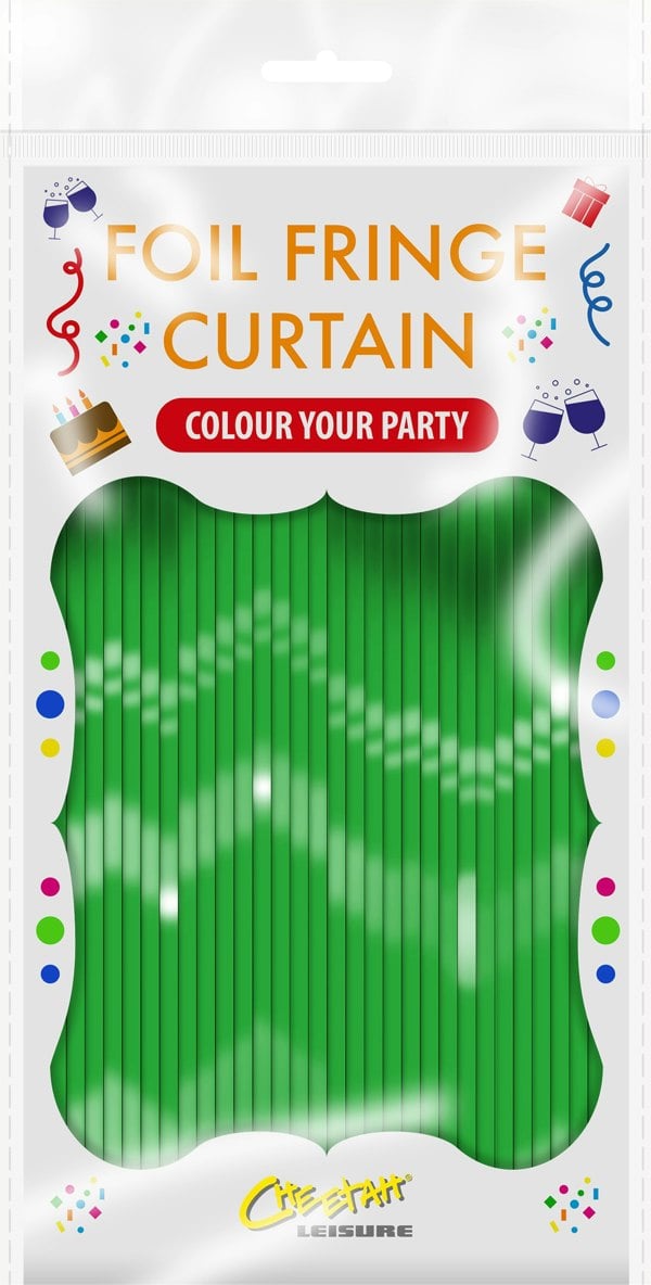 Cheetah Shimmer Tinsel Curtain, 2.5M x 1M Green