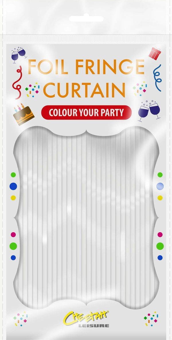 Cheetah Shimmer Tinsel Curtain, 2.5M x 1M White