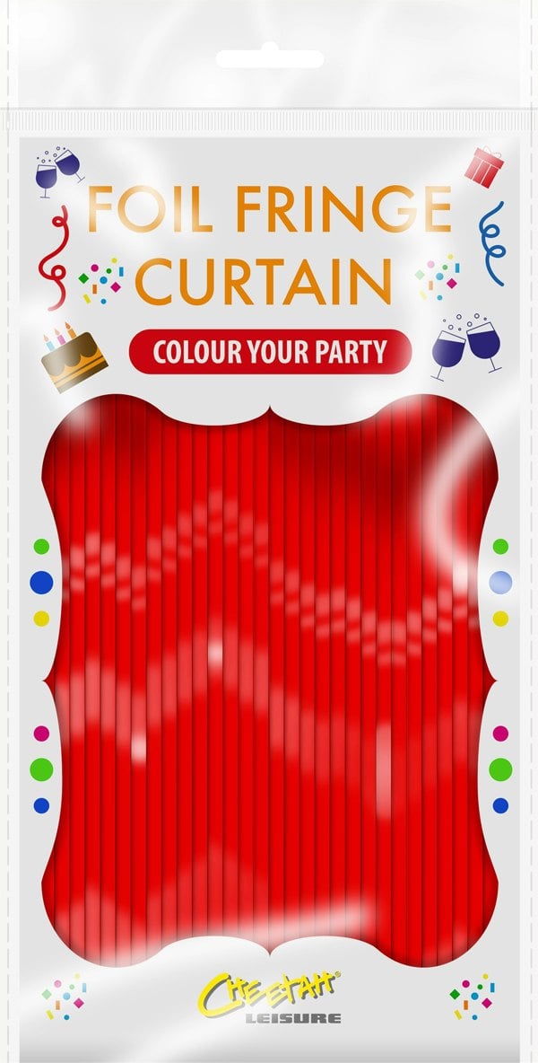 Cheetah Shimmer Tinsel Curtain, 2M x 1M Red