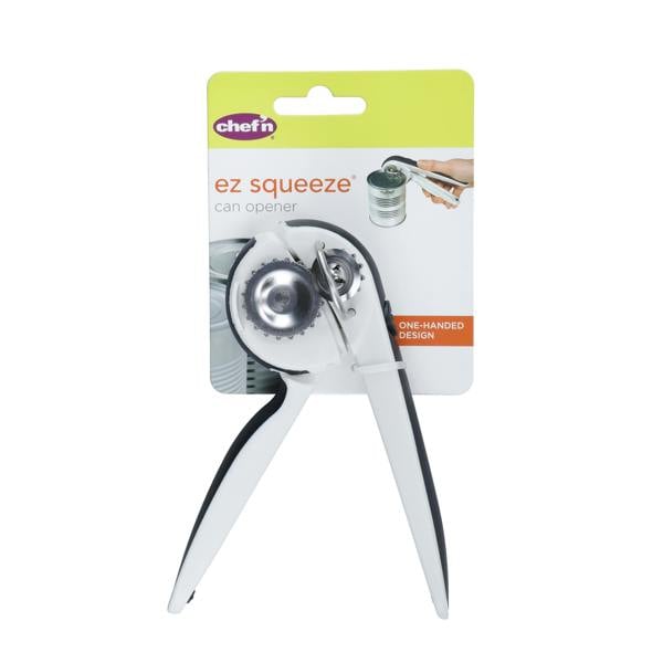Three cheers for the EZ Squeeze® Can Opener! One hand and a few squeezes of the ratcheting handles is all that's needed to open cans in a jiffy. Now that's something to celebrate!