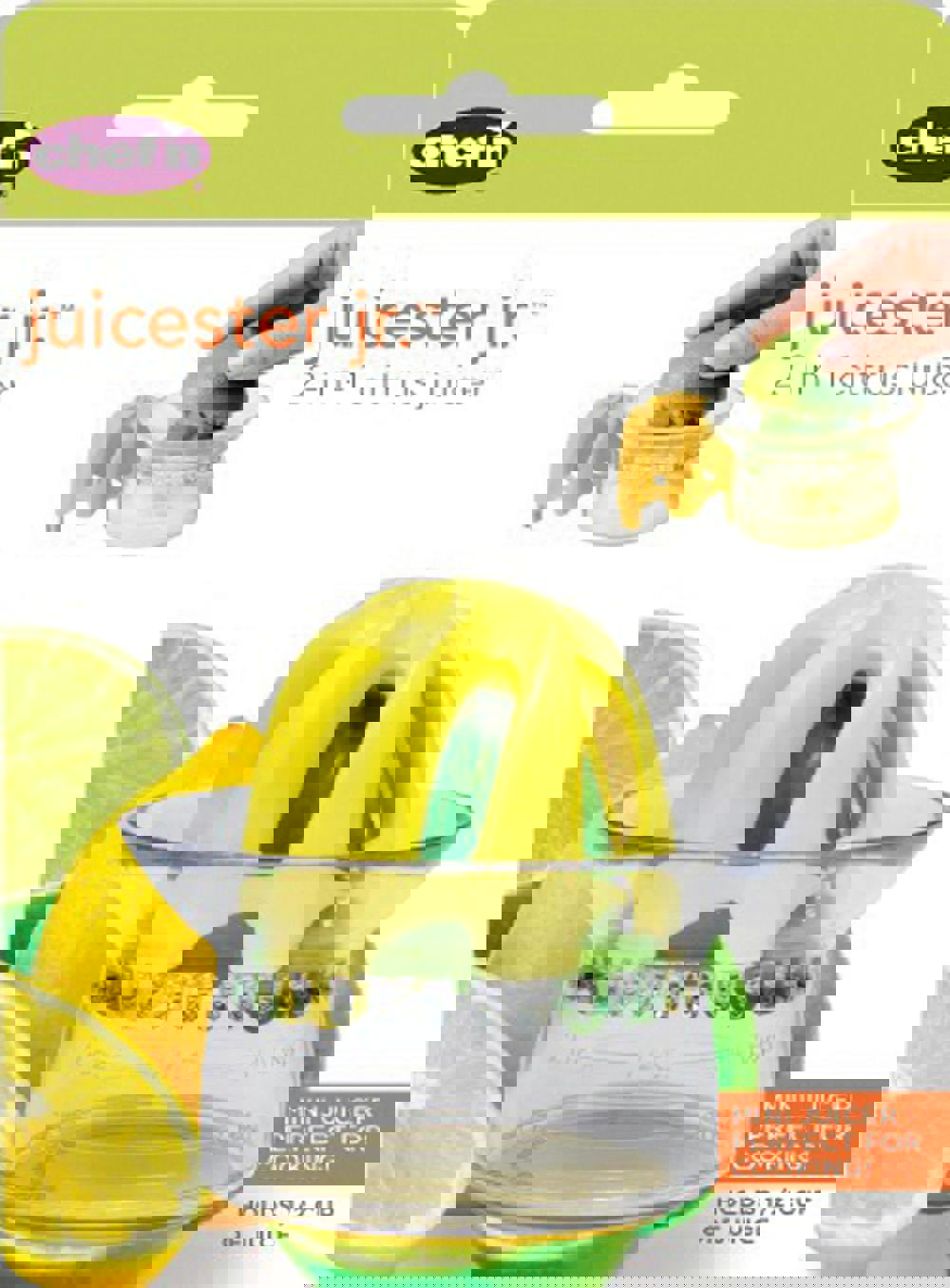 Enjoy quick, mess-free juicing anytime with the Juicester Jr. Meet Juicester Jr. , the smallest, most convenient and compact juicer from Chef'n yet. Two reamers and a clearly marked measurement cup make this mini juicer perfect for adding a dash (or glug) of citrus freshness to any recipe or drink. Whether it’s lime for margaritas or lemon for meringue pies, the deep-ridged reamers extract maximum juice with minimum effort. The high lip of the collection cup minimises splashes and mess, while the teeth strain pulp and seeds for a smoother juice. Includes a 12-month guarantee.