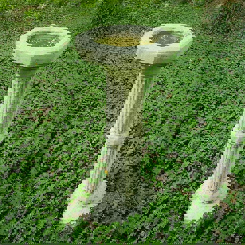 Tall narrow design exquisite birdbath with octagonal top and antique finish. It is classic and beautifully styled and would fit effortlessly into any garden or patio. Due to the handmade nature of this product the colour can vary slightly to the one pictured. Made by Sparta Stone.