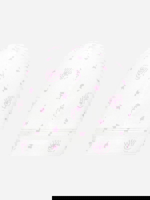 This baby girls hat by Chiara Ferragni comes in white for a clean, understated look. A staple accessory for the AW2021 season, it suits cooler days and adds a simple finish to an outfit.