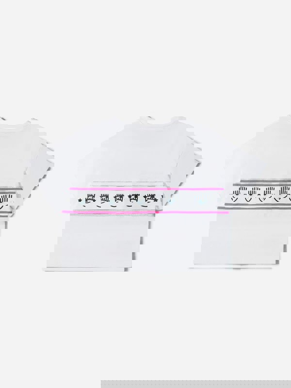 Chiara Ferragni Girls Cotton Jersey Cropped Logo T-Shirt in white. Made in cotton jersey, this cropped style adds a clean, modern look to everyday outfits. A logo print brings a bold branded finish, keeping the design simple and graphic.