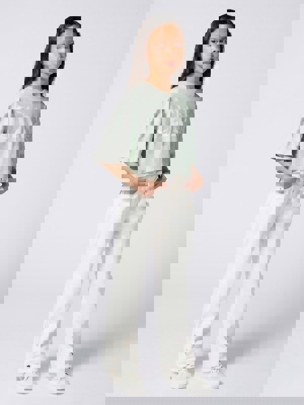 These girls’ denim trousers from Chloé come in an ivory tone with a minimalist look and subtle detailing. Made from 100% cotton, they are finished with a five-pocket layout and decorative drills and scallops on the front. A waist and zip fly closure keeps the silhouette neat, while branded elements include a Chloé button and a leather jacron stamped “Chloé Paris”.