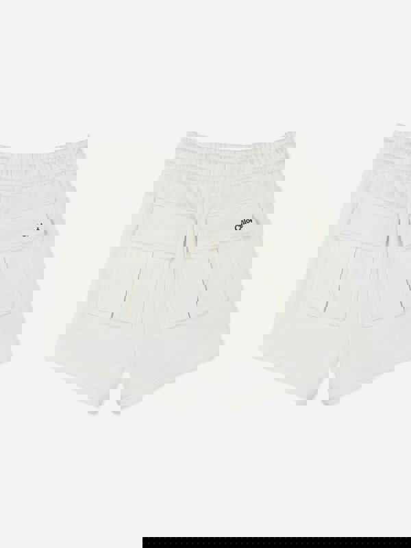 These girls’ shorts from Chloé come in an ivory tone with a clean, minimalist look. Made in French terry, they combine a soft, structured finish with practical pocket detailing. Piped pockets sit at the front, while patch pockets at the back are finished with contrasted bias for a subtle point of difference. An elasticated waist with knock in keeps the shape simple and easy to wear, and the Chloé Mylar print adds a branded touch.