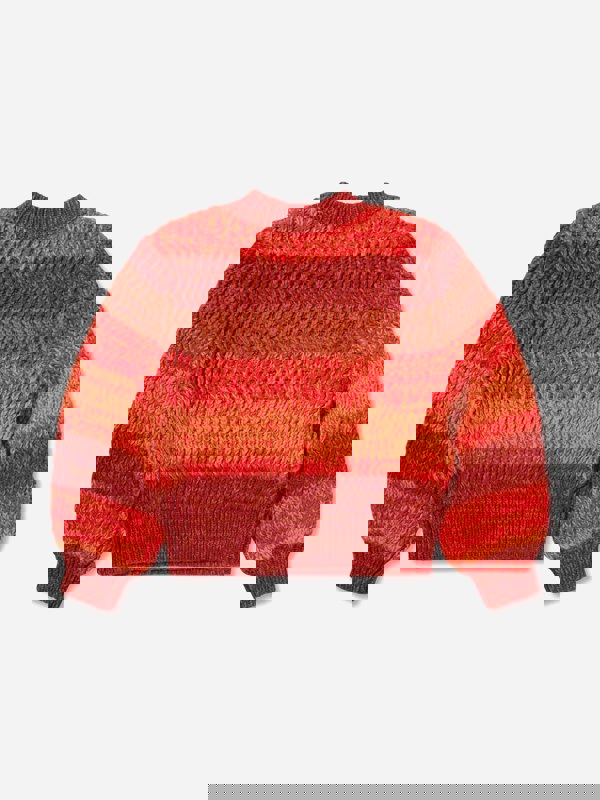 A practical wardrobe layer with a bold colour palette, it offers a clean silhouette and a detailed gradient effect across the knit.